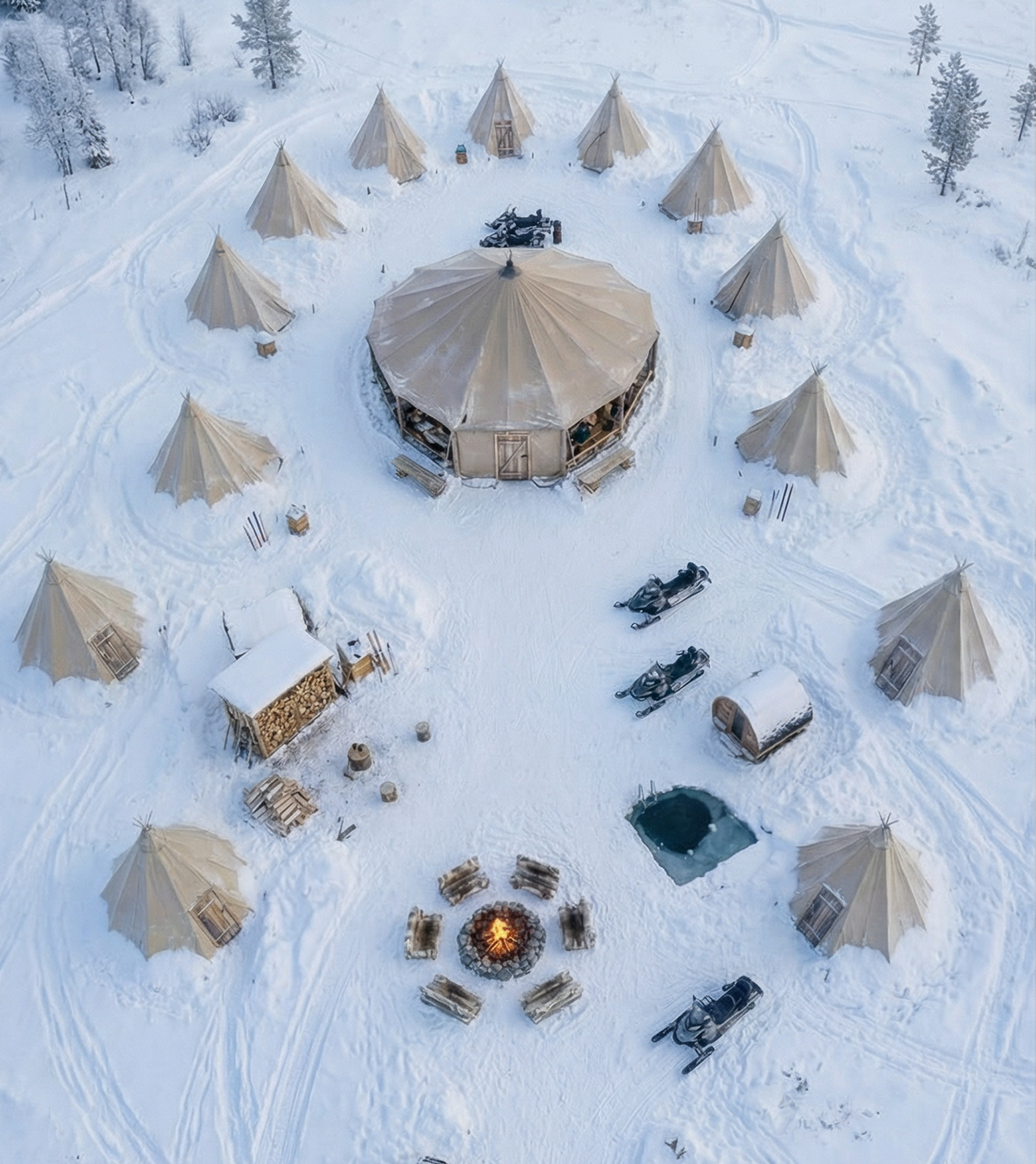Kompass isn’t a hotel. It’s a five day retreat in the Swedish Arctic, limited to ten guests, split between a remote camp and Arctic Bath.